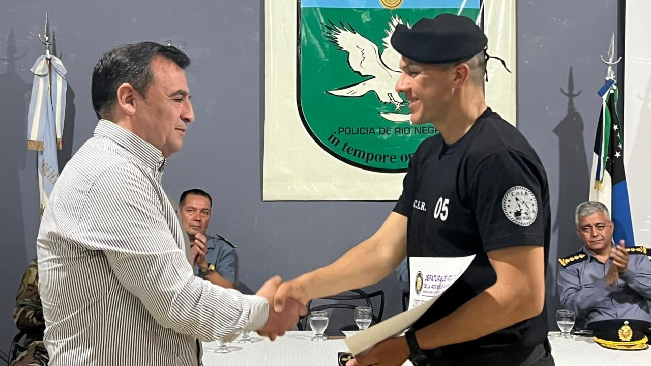 La capacitación, desarrollada durante todo el mes de noviembre, tuvo lugar en la Base del Centro de Instrucción Especial con asiento de sus funciones en Allen. El Ministro de Seguridad y Justicia, Daniel Jara, encabezó junto al jefe de la Policía de Río Negro, Daniel Bertazzo, el acto de aprobación del Curso Básico COER, correspondiente al Plan Anual de Instrucción para la Policía de Río Negro.
